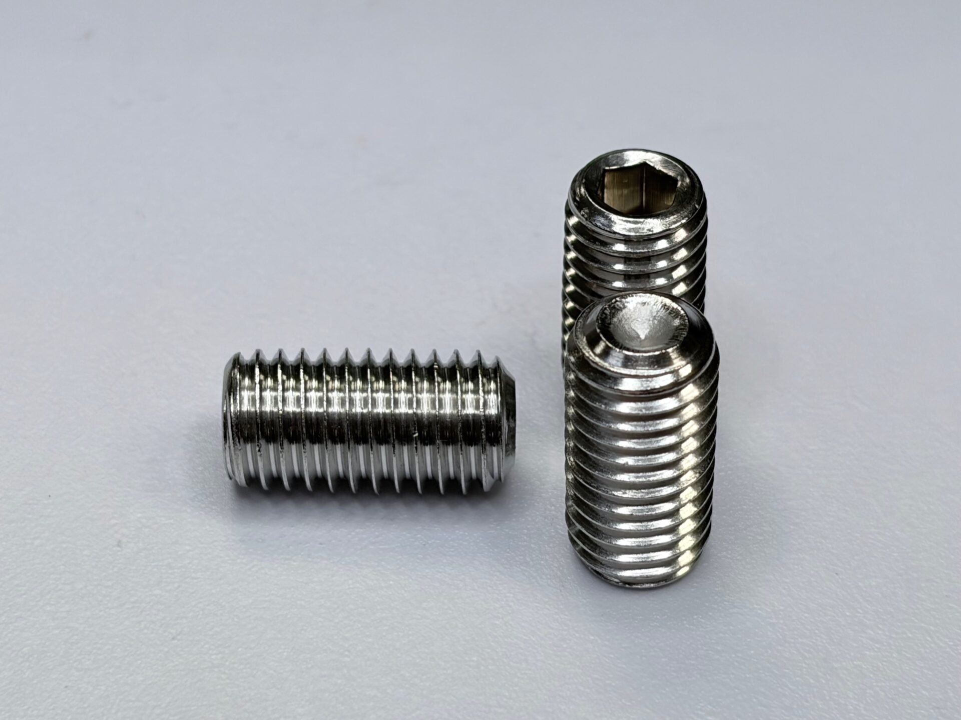 ねじ部先端に円錐状のくぼみがあり、六角穴付き止めねじでは一般的なタイプです。