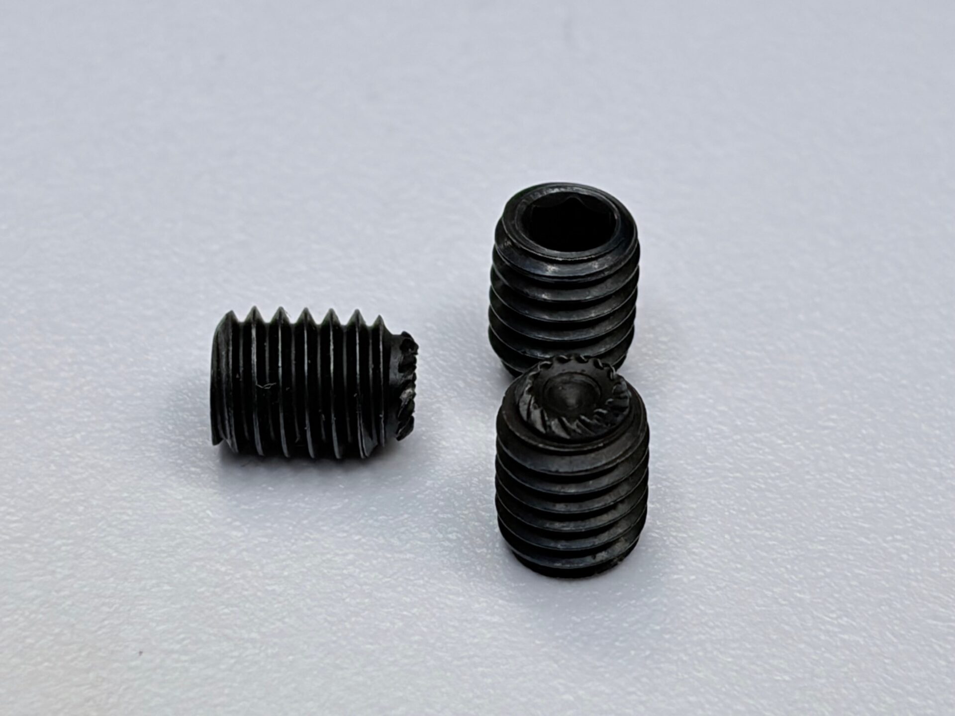 六角穴付止ネジは、頭部がなく、ねじ部と同じ大きさで、六角形の穴が開いているネジです。イモネジやホーローセット、HSとも呼ばれ、ネジ部の先を部材に押し付ける事で、主に機械部品の位置決めや固定に用いられます。